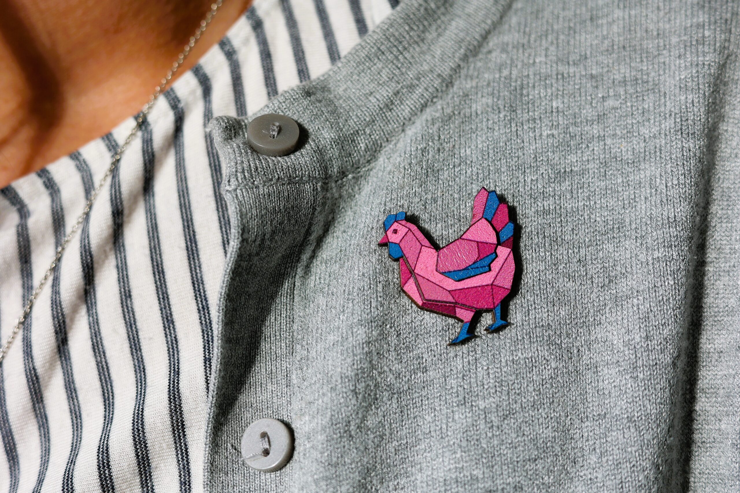 Designová dřevěná brož ve tvaru slepice z kolekce Metamorfóza je symbolem hravosti, proměny a tvůrčího ducha, který prostupuje hudbou Janáčkovy filharmonie Ostrava.