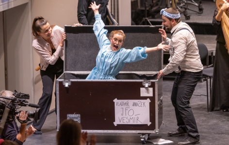 Náš orchestr, to je jeden hrdina vedle druhého. Při každém koncertě musí čelit překážkám a nástrahám jako hrdinové z dobrodružných příběhů. V čele s panem dirigentem, který se neohroženě staví dopředu a taktovkou udává směr dobrodružné jízdě. Vláďa s Karlou jsou nadšeni! Fandí a společně s hudebníky přijímají všechny dobrodružné výzvy, které jim dnešní koncert přinese. Přidejte se k nim, naši milí posluchači! Vzhůru za dobrodružstvím!